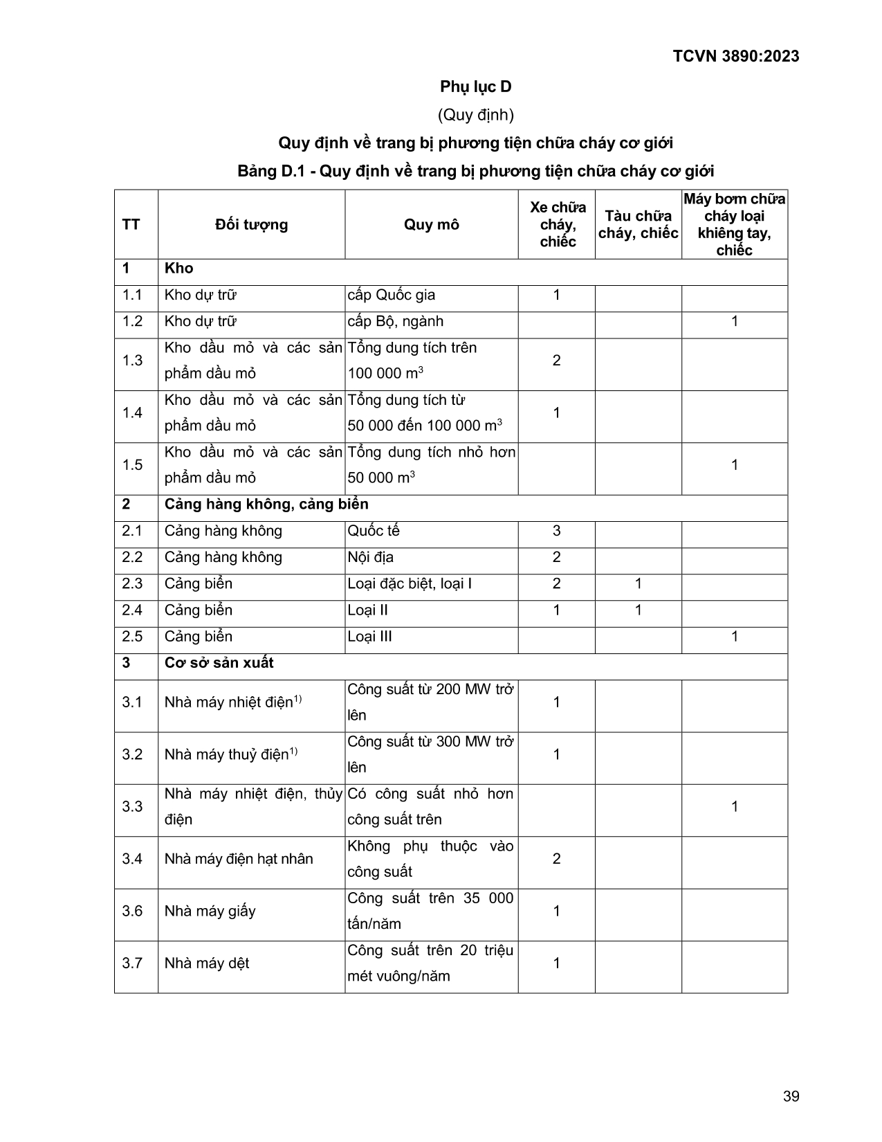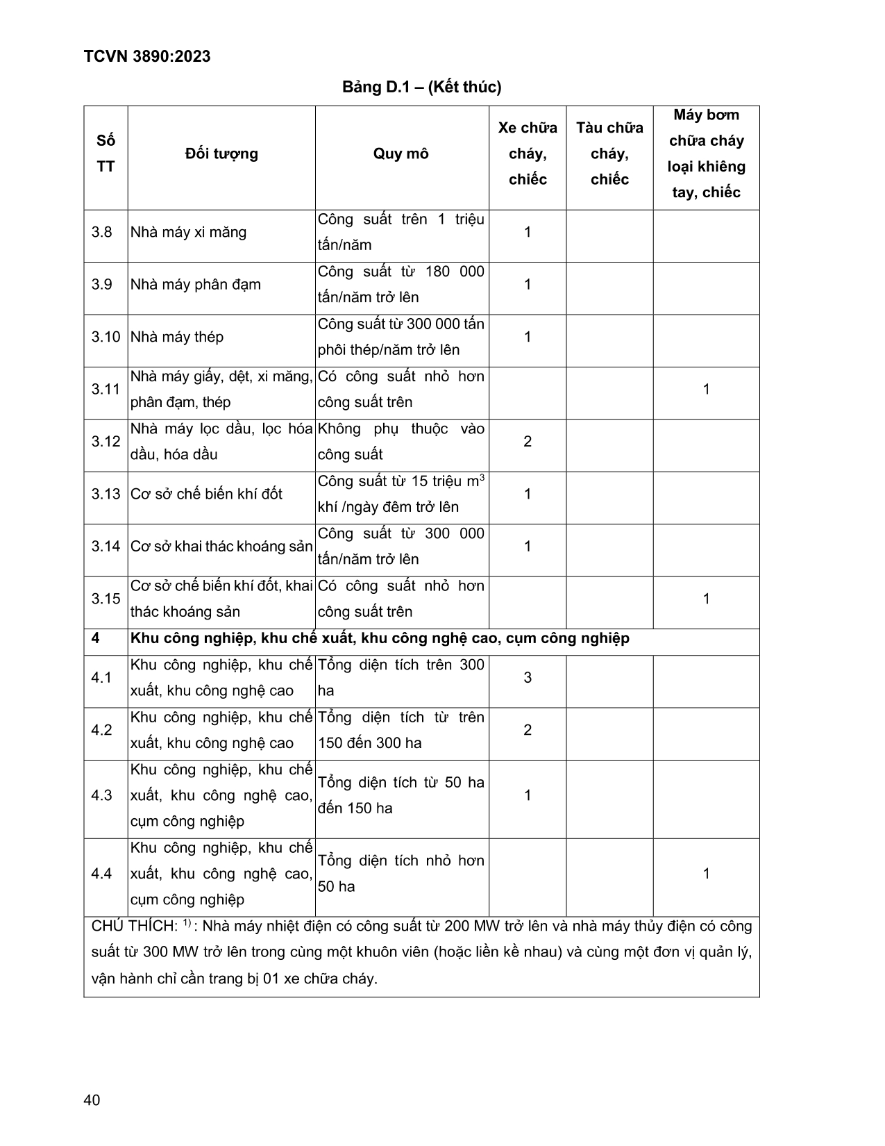 Đặc biệt, các nhà máy nhiệt điện có công suất từ 200 MW trở lên và nhà máy thủy điện có công suất từ 300 MW trở lên cũng phải trang bị xe chữa cháy.